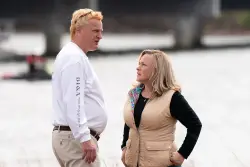 Mitt Romney’s despondent brother strolls through rain days after estranged wife found dead